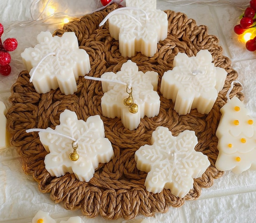 Bring the magic of winter straight into your home with our handcrafted Christmas snowflake candles made with soy wax. Perfect for Christmas gifting, holiday decor, cozy corners, and those aesthetic winter vibes!