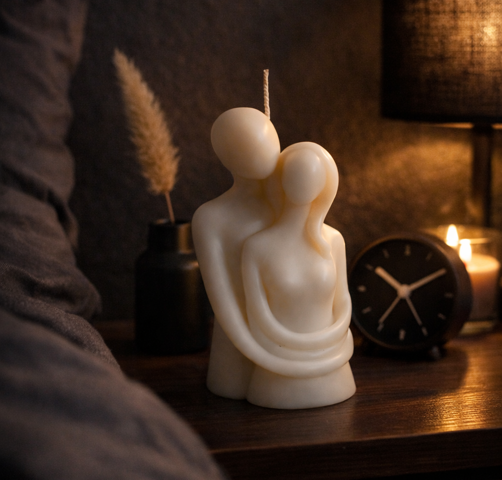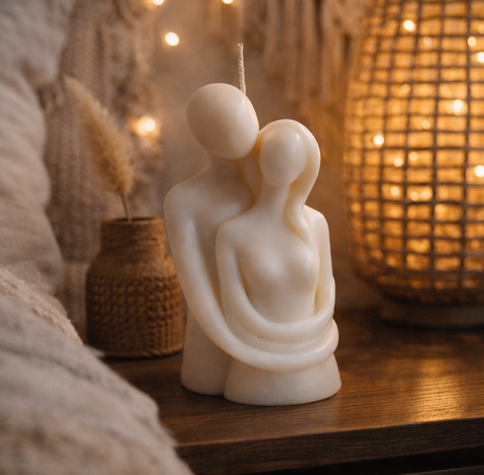 Add warmth, love, and artistic charm to your space with our romantic Couple Candle, a beautifully handcrafted sculptural candle designed to celebrate togetherness. Featuring two abstract figures in an intimate embrace, this candle blends minimalist art with boho aesthetics, making it a stunning bedside decor accent and a thoughtful gift for special occasions.